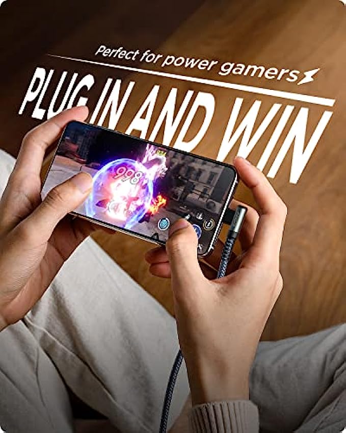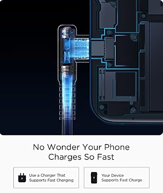• [Upgraded Exclusive Right Angle Design] This right angle type c charging cable fast charge with an innovative 90 degrees " L " design. It's user-friendly design more convenient and comfortable for playing games, watching videos, reading e-books when you charging. 【 NOTE: The thickness of the compatible mobile phone case charging port is 5.5mm.】